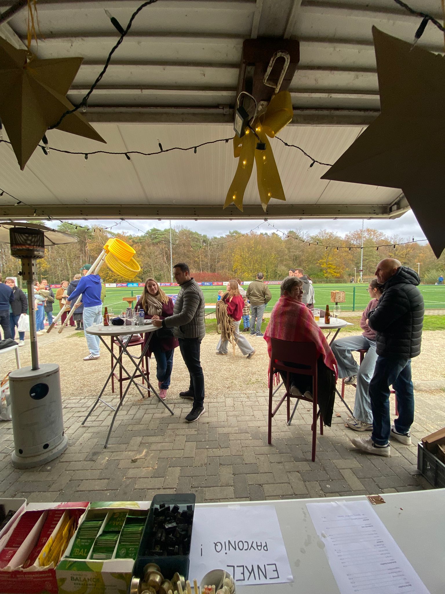 Ook voor de ouders werd er iets georganiseerd. Terwijl de kinderen binnen bij de Sint hun moment beleefden, stond buiten een aparte activiteit klaar. De ouders werden voorzien van drank door de kern en konden enkele spelletjes spelen.