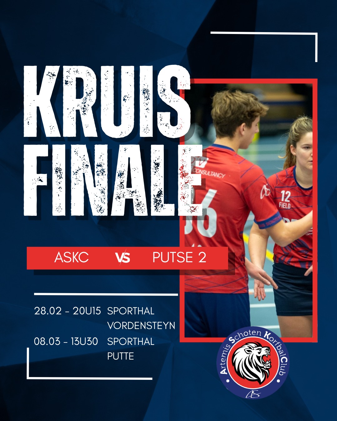 - Tweede wedstrijd: Zondag 8 maart, 13:30 uur in sporthal Putte