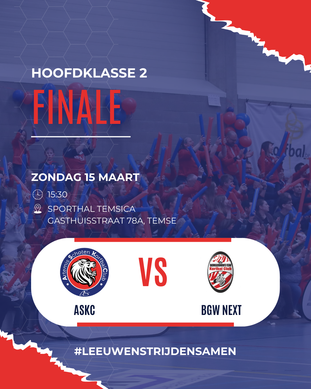 Zondag 15 maart 2026 is DE dag waar ASKC al een heel zaalseizoen naar uitkijkt. Om 15u30 start in Sporthal Temsica (Temse) de finale in Hoofdklasse 2 tegen BGW Next. De inzet? Promotie naar Hoofdklasse 1!